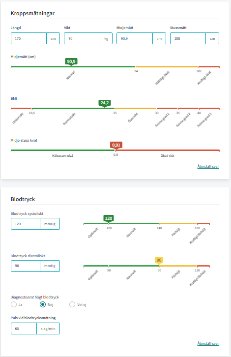 - Underlag för att registrera mätvärden och undersökningsresultat, för att kunna följa trender i arbetsgruppen och rapportera till deltagarens hälsokonto.